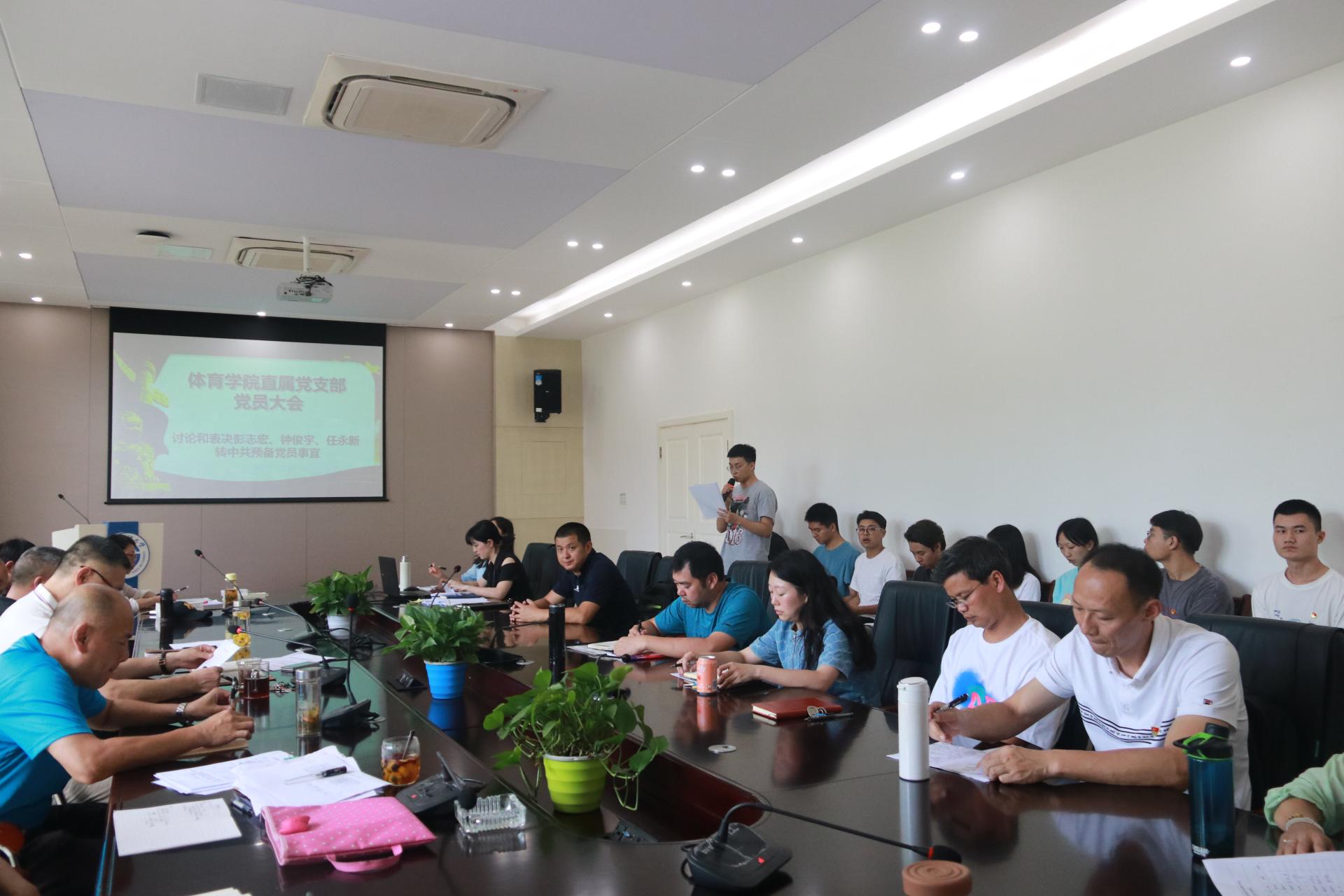 6月15日,沙巴足球网直属党支部在游泳池二楼会议室召开支部党员大会,讨论和表决预备党员转正以及彭志宏等三名发展对象转中共预备党员事宜。支部全体师生党员参加,应到60人,实到46人。直属党支部书记杨远波主持会议。