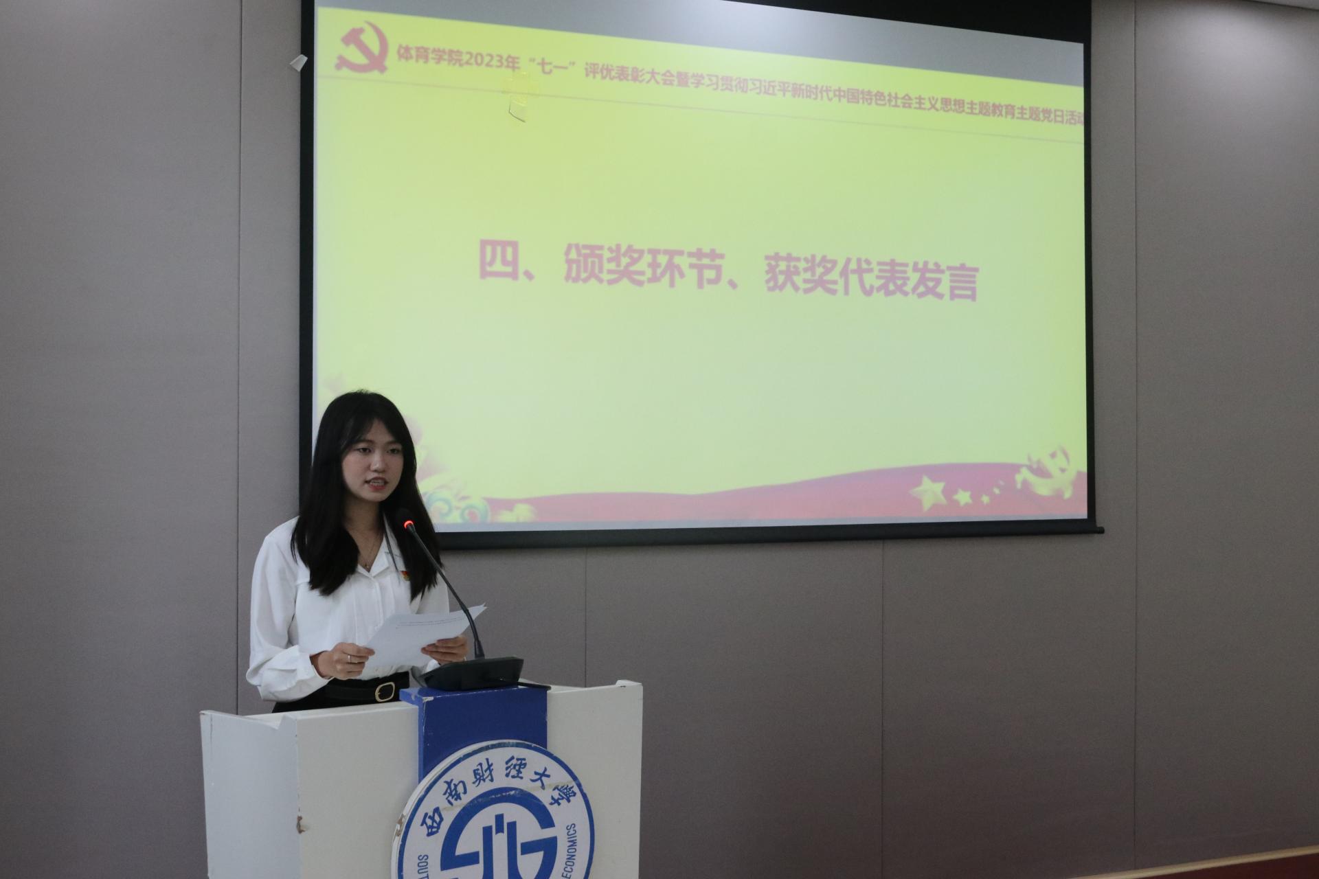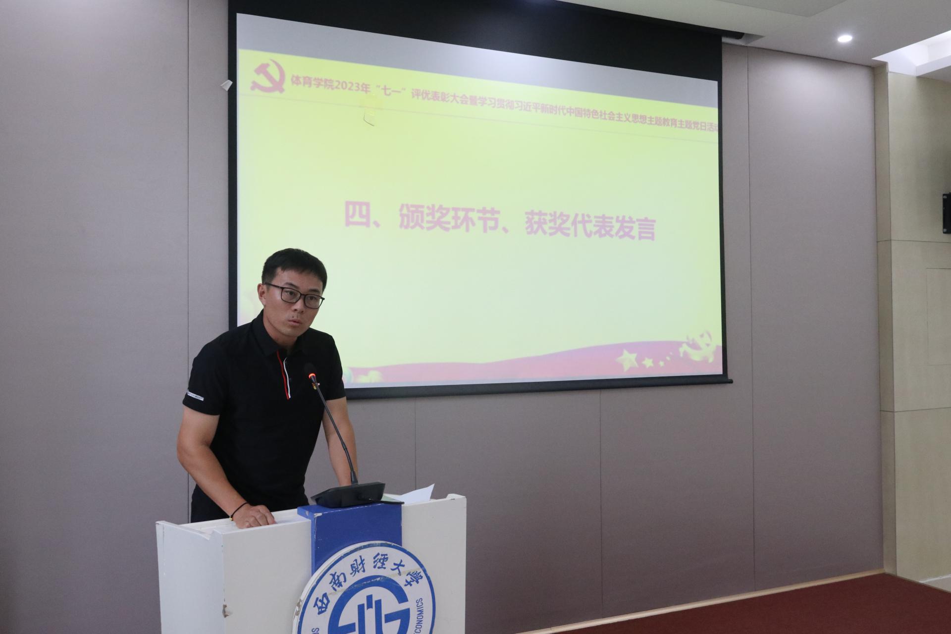 受表彰的教师代表孙巨杉同志用“初心、责任心、恒心”概括分享自身在网球教学、群体赛事活动组织方面的成长感悟,学生代表邹子怡同志在发言中深情总结自己在“志愿服务、学术求真、实践技能提升”等方面的收获思考,均表示要以主题教育为契机,在工作和学习中争当行动先锋、勇担青春使命,充分发挥模范带头作用。
