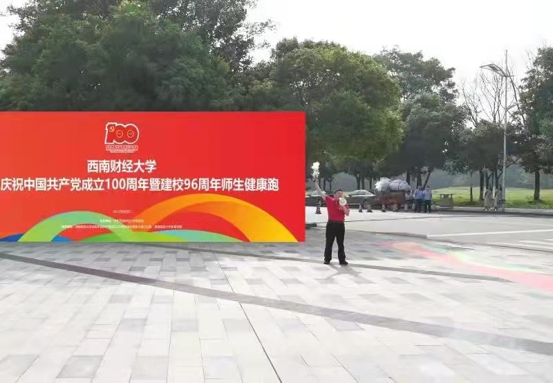 6月2日,西南财经大学在柳林校区举行庆祝中国共产党成立100周年暨建校96周年师生健康跑,以寓教于行、健康向上的体育运动进一步激发师生爱党爱国爱校热情,用赤诚饱满、昂扬奋发的师生风貌向党的百年华诞和建校纪念日献礼。校领导赵德武、卓志、彭龙、曾道荣、范卫宏、史代敏、张邦富等领跑,中层干部、教职工和学生代表参加健康跑。