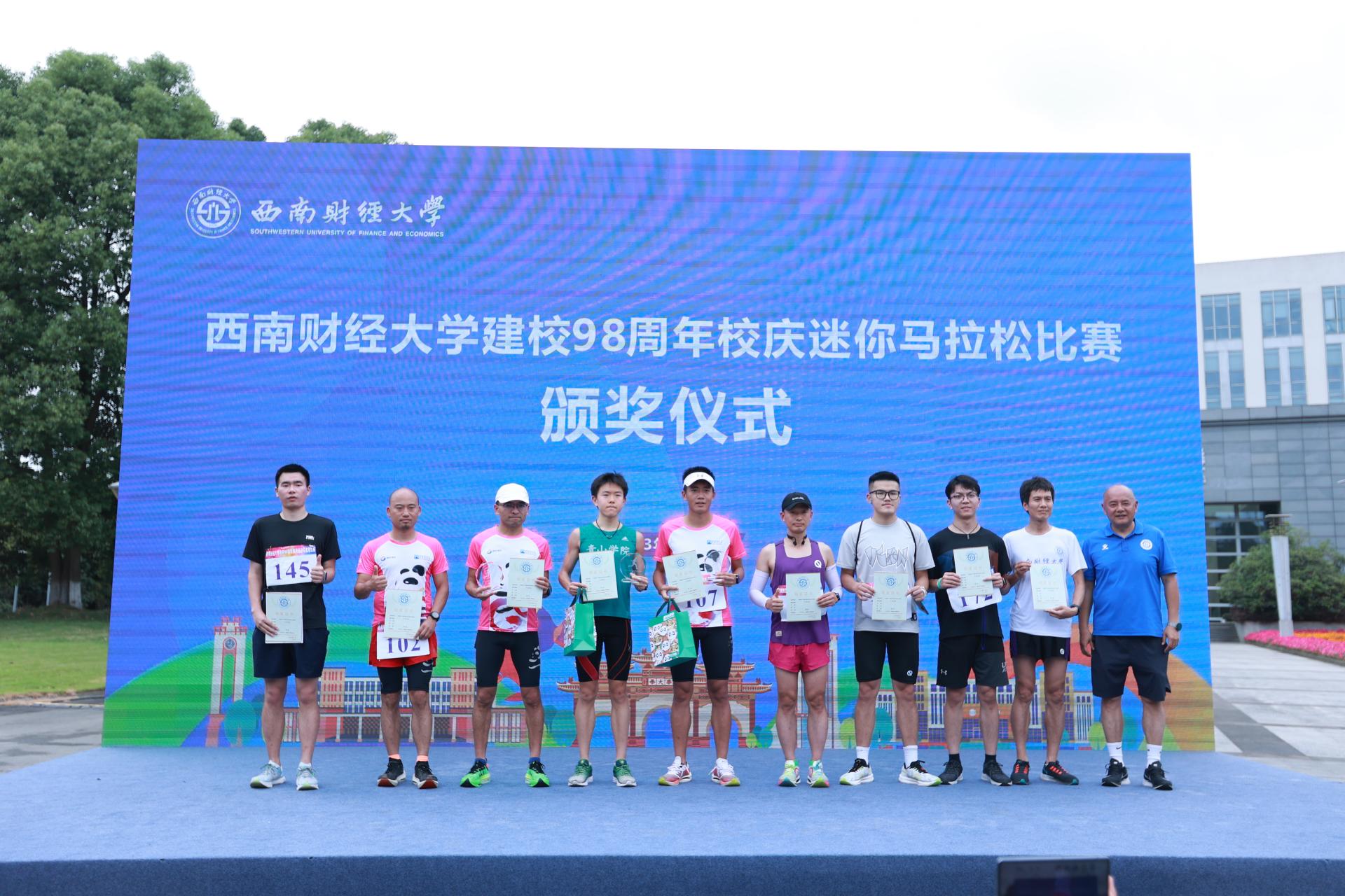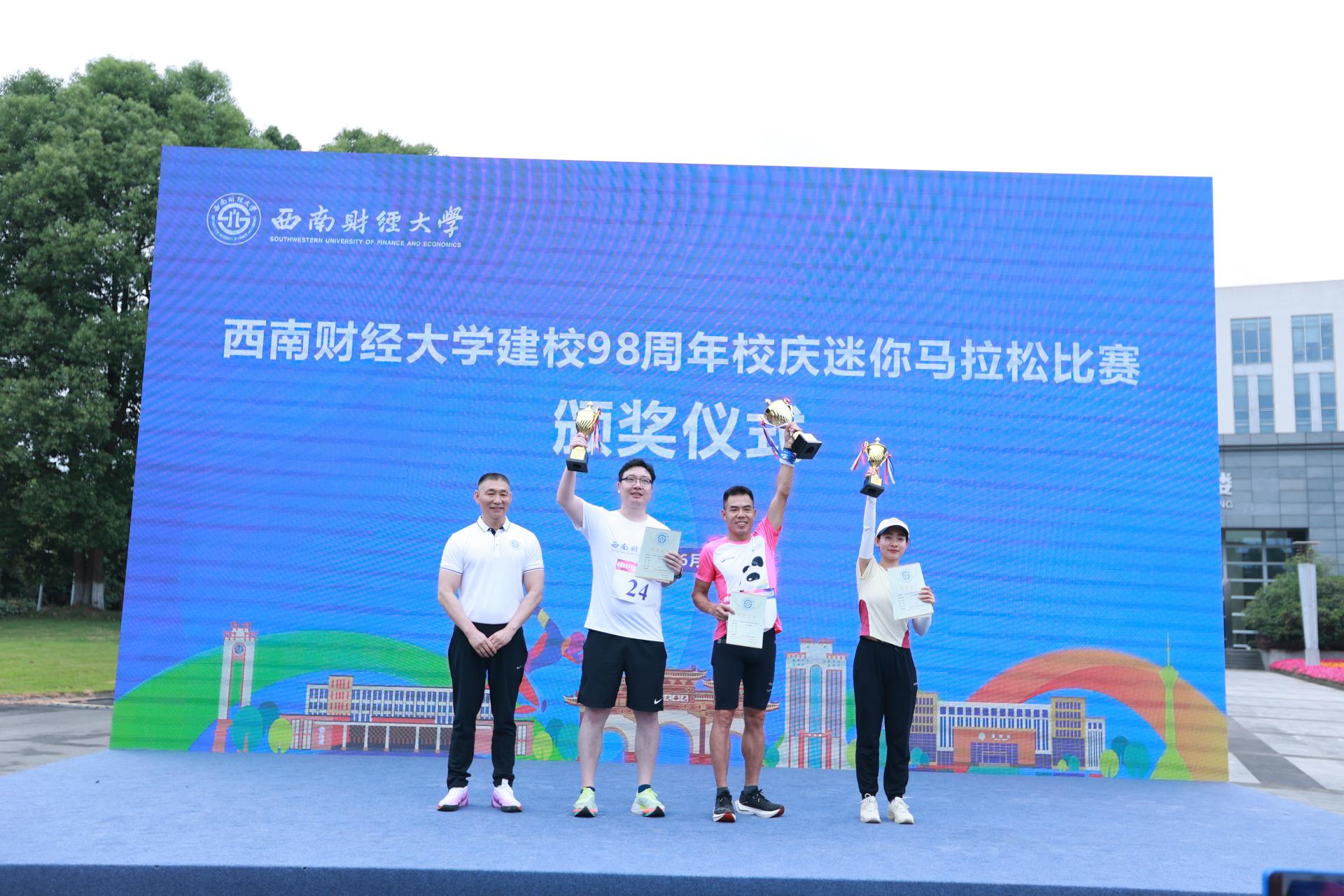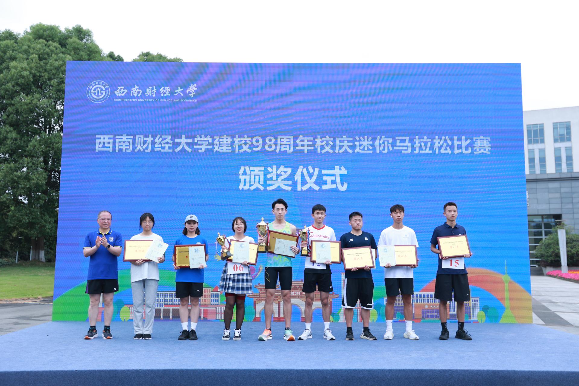 健康跑结束后举行了迷你马拉松混和接力赛和个人赛,300余名师生及校友参加角逐。沙巴足球网院长杨远波为比赛鸣枪发令。李永强为获奖运动员和团队颁奖。