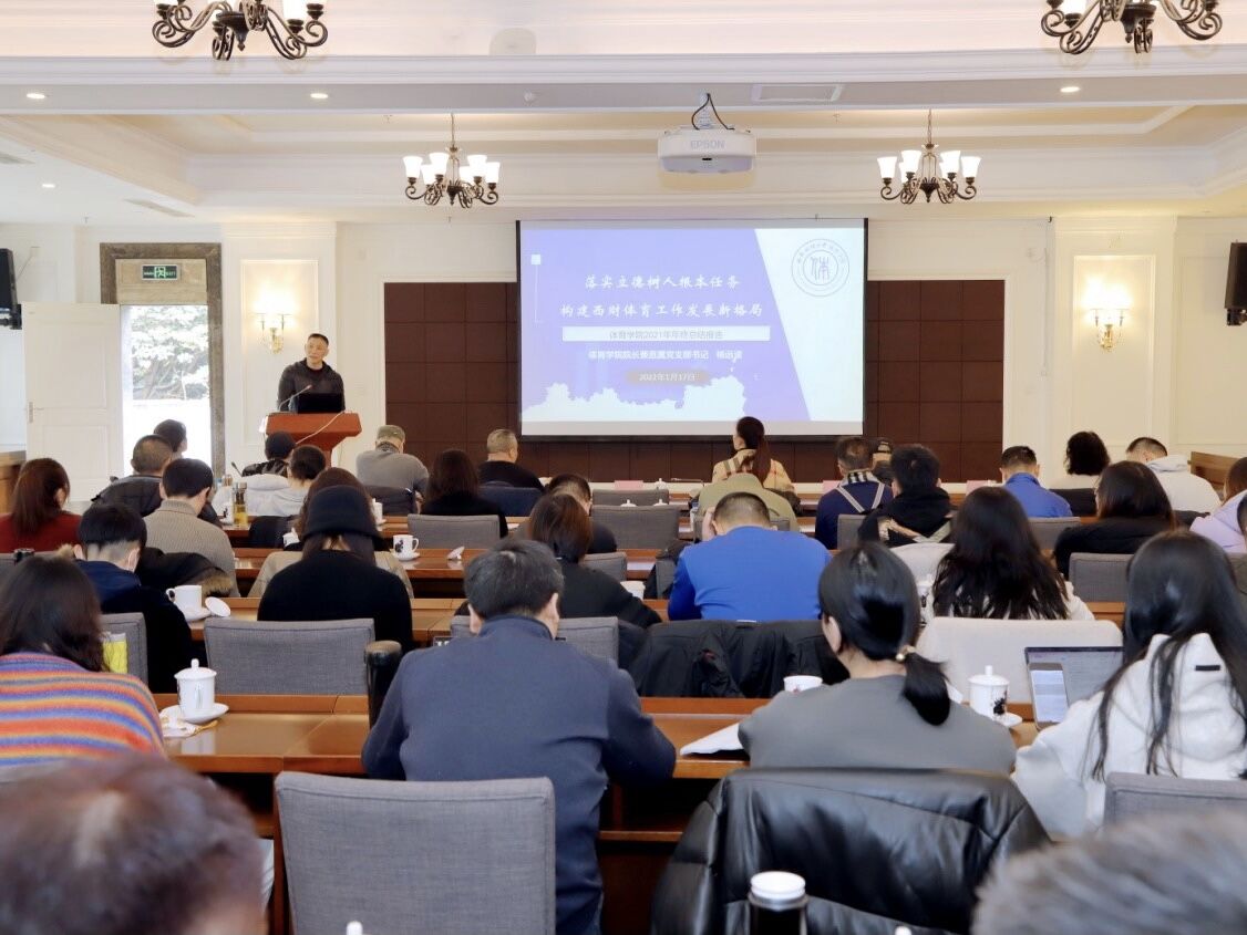 在随后召开的沙巴足球网2021年年终总结会上,院长兼直属党支部书记杨远波就学院2021年度工作总结和2022年度工作思路及举措作报告。他指出,2021年是全面建成小康社会和“十四五”规划的开篇之年,也是实现第一个百年奋斗目标的决胜之年,全院教职工对学院各方面工作建设的辛勤付出和卓越贡献。2022年,学院要围绕贯彻落实学校第十三次党代会和第十三届二、三次党代会精神,深入推进党的建设,扎根中国大地,瞄准世界一流,聚力改革创新,将体育纳入全面实施素质教育的各项工作中,落实立德树人根本任务,持续深化“1+3”体育教育教学模式改革,全学段全覆盖开设体育课,通过“教会、勤练、常赛”,完善“四位一体”学生体质健康促进体系,深化体育综合评价机制改革,促进学生身心素质全面协调发展;做好大运会相关工作,加大智慧型体育场馆建设力度。面对新时代新征程新使命,自信自强、守正创新,全面加强和改进新时代学校体育工作,以优异成绩迎接党的二十大胜利召开。