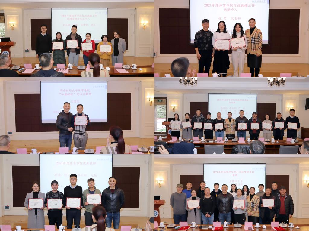 2022年1月17日下午,西南财经大学沙巴足球网2021年年终总结会暨体育科学论文报告会在光华校区住友苑会议室举行。沙巴足球网院长兼直属党支部书记杨远波,副院长周正宏、副院长阴涛,学院老领导范佳音、原教授委员会主任委员白耀东以及沙巴足球网全体教师参加了会议。