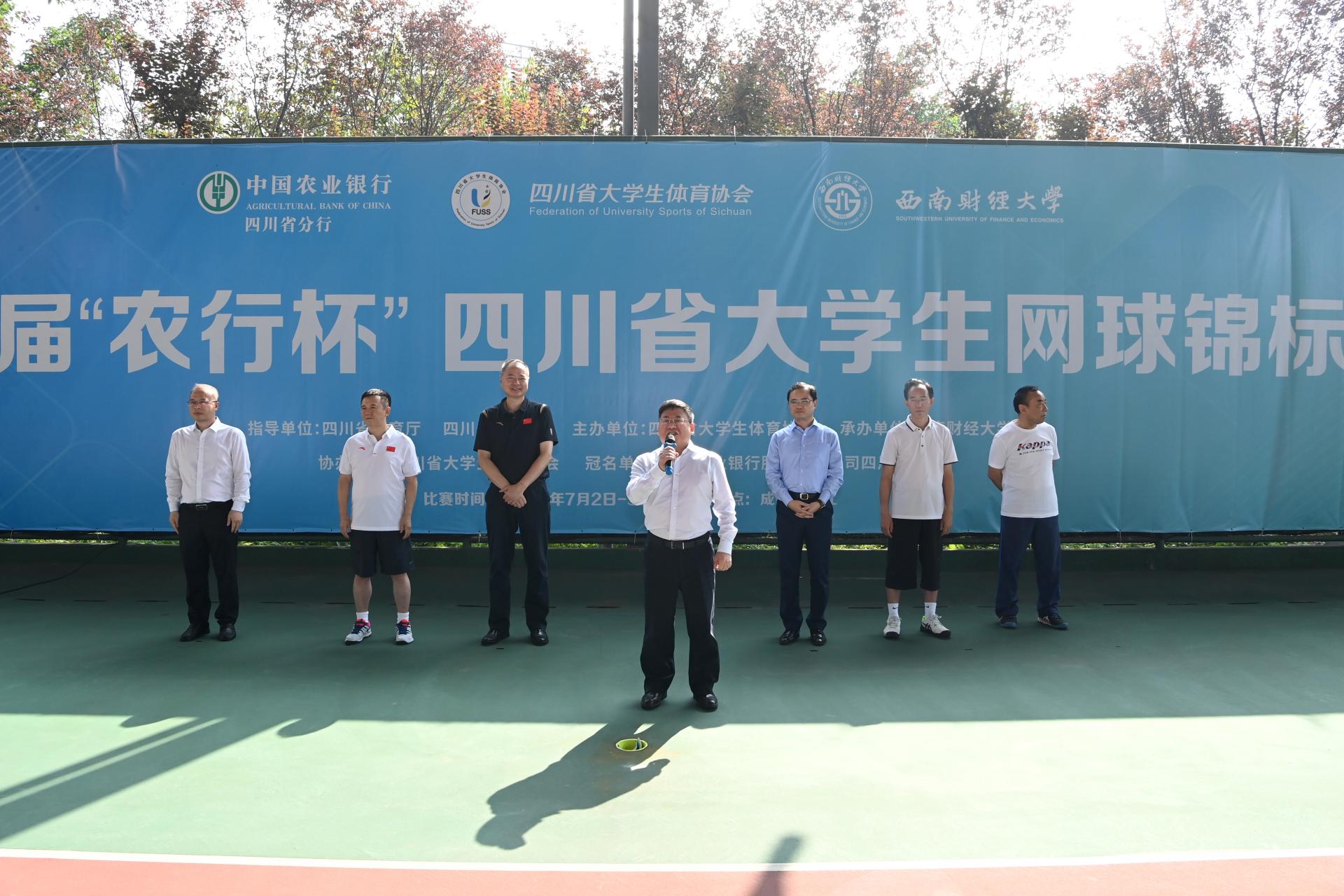 刘青代表四川省大学生体育协会向农行四川省分行的大力支持和沙巴(中国)承办本次赛事表示衷心感谢,并预祝本次比赛圆满成功。刘加旺代表农行四川省分行对本次比赛开幕表示热烈祝贺,并表示以“网”为媒,共建文体活动平台,共襄师生网球盛会,共享竞技体育魅力,促进高校间交流互信、务实合作、多方共赢。 随后主席台的领导嘉宾为本次比赛开球。