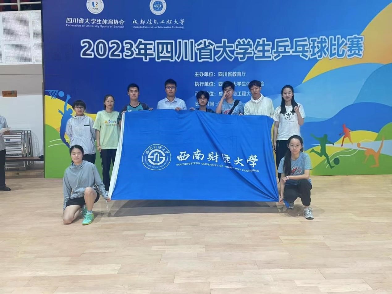 在2023年四川省大学生乒乓球比赛中,由闫铭辉、李书睿老师带领的校乒乓球队获得男子团体(陈泓吉/伍真宜/沈文瑞/吴享强/袁彦博)第四名、混合双打(伍真宜/玄熠)第六名,女子单打(孔令攀、邬雨池)分获第七名、第八名。