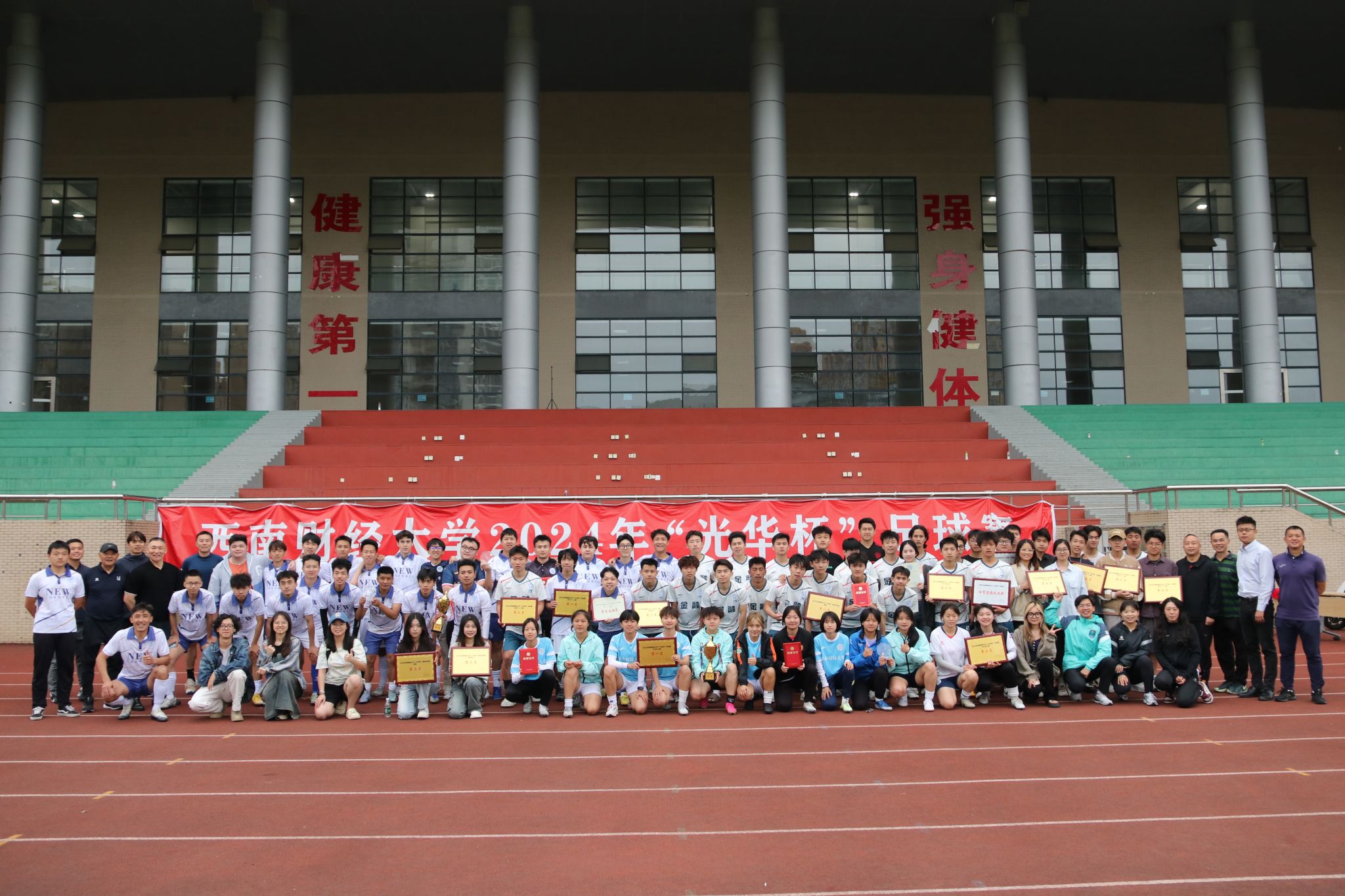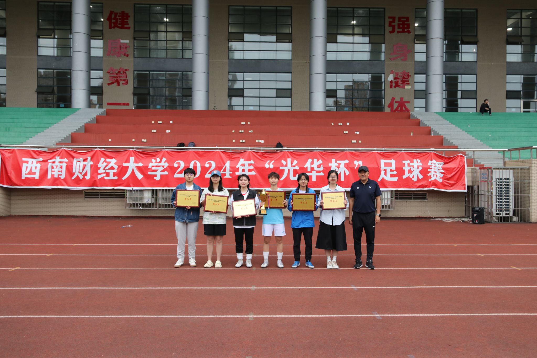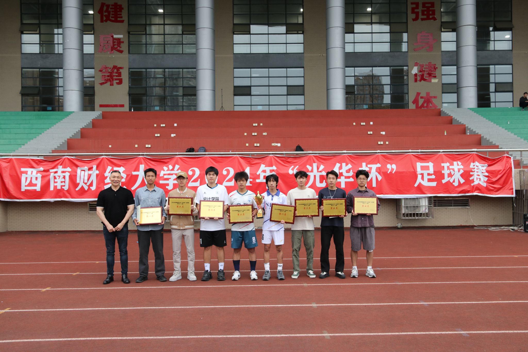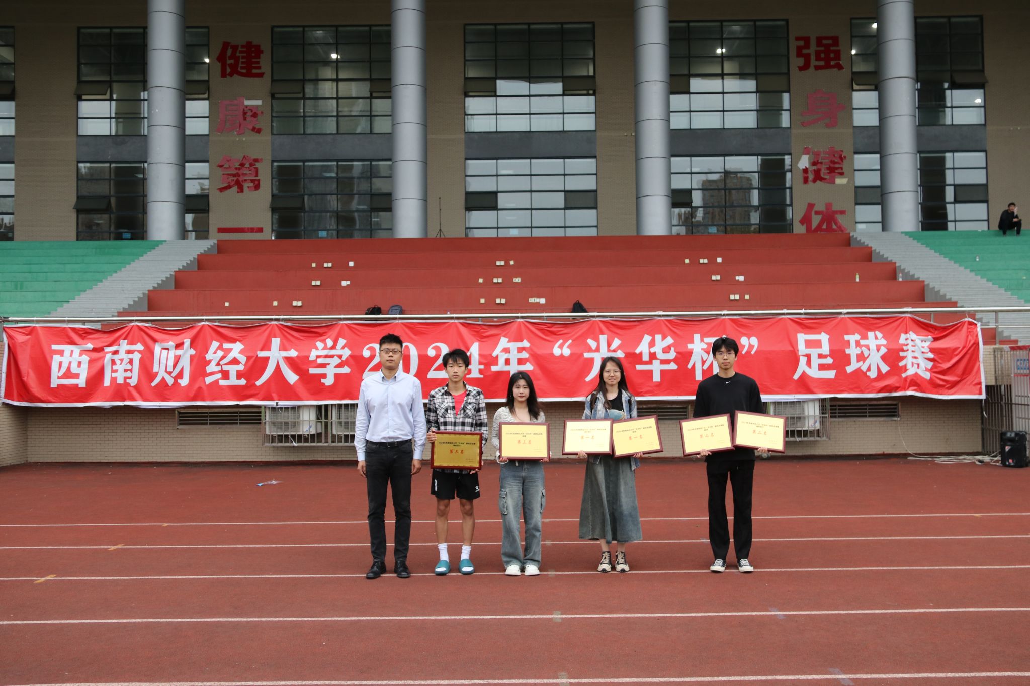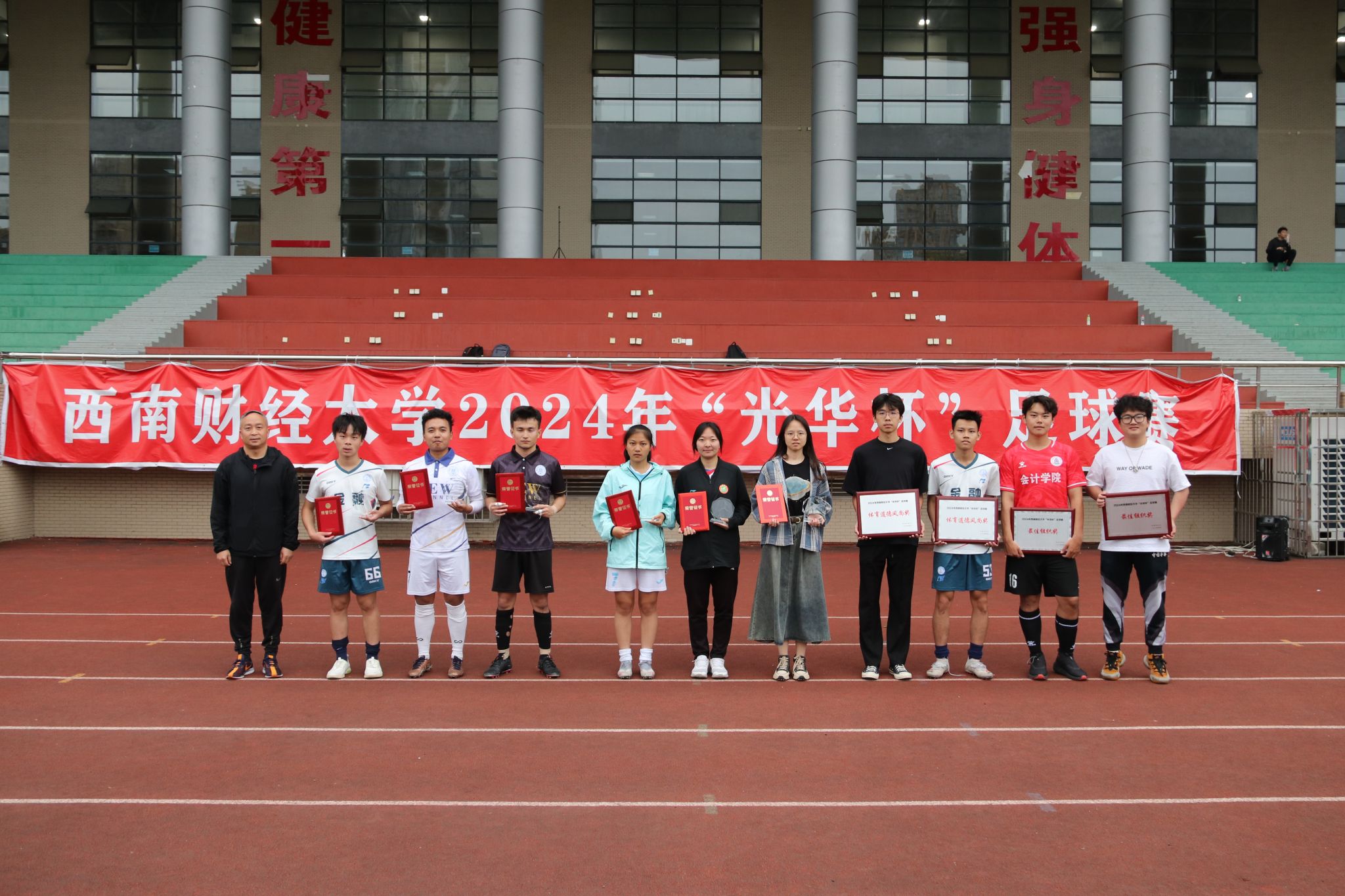 4月23日下午,“礼赞新时代·奋进新征程,迎百年校庆·铸西财辉煌”2024年西南财经大学“光华杯”足球比赛颁奖仪式在晨曦足球场举行。沙巴足球网院长杨远波,党委书记周正宏,副院长阴涛、陈丛刊,副书记李治为获奖学院以及个人颁发了荣誉证书及奖牌。