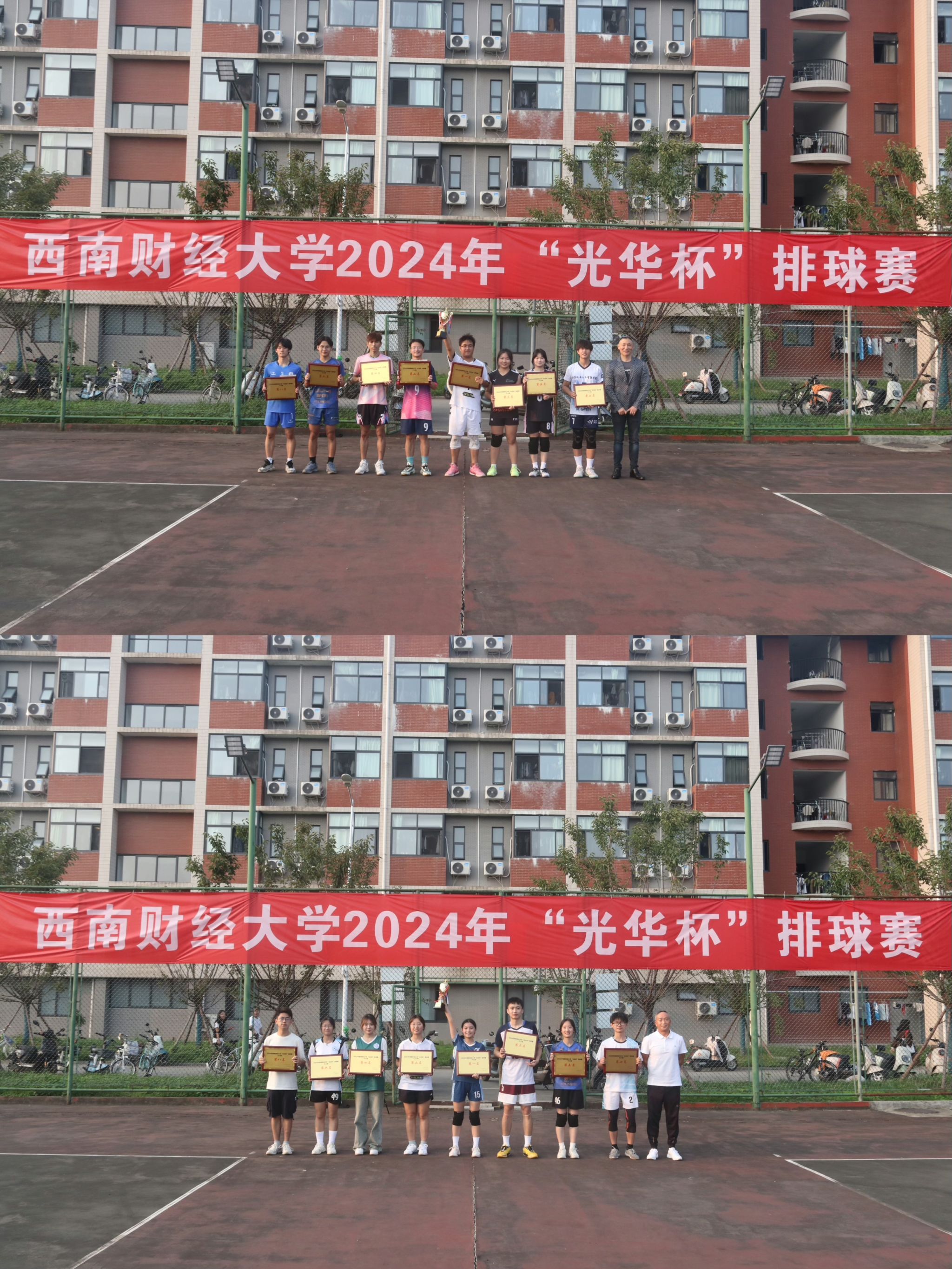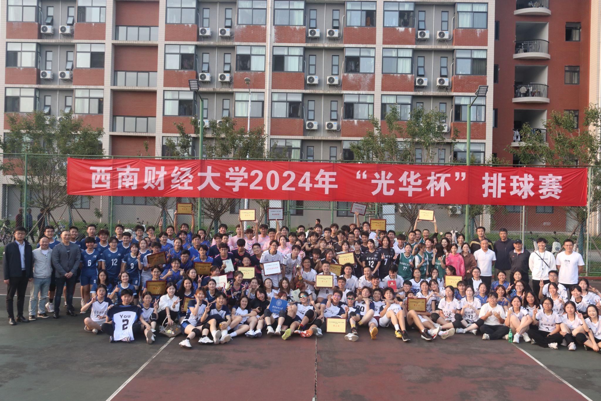 10月15日下午,“礼赞新时代·奋进新征程,迎百年校庆·铸西财辉煌”2024年西南财经大学 “光华杯”排球赛颁奖仪式在晨曦排球场举行。沙巴足球网院长杨远波,党委书记周正宏,副院长阴涛、陈丛刊,副书记李治为获奖学院以及个人颁发了荣誉证书及奖牌。