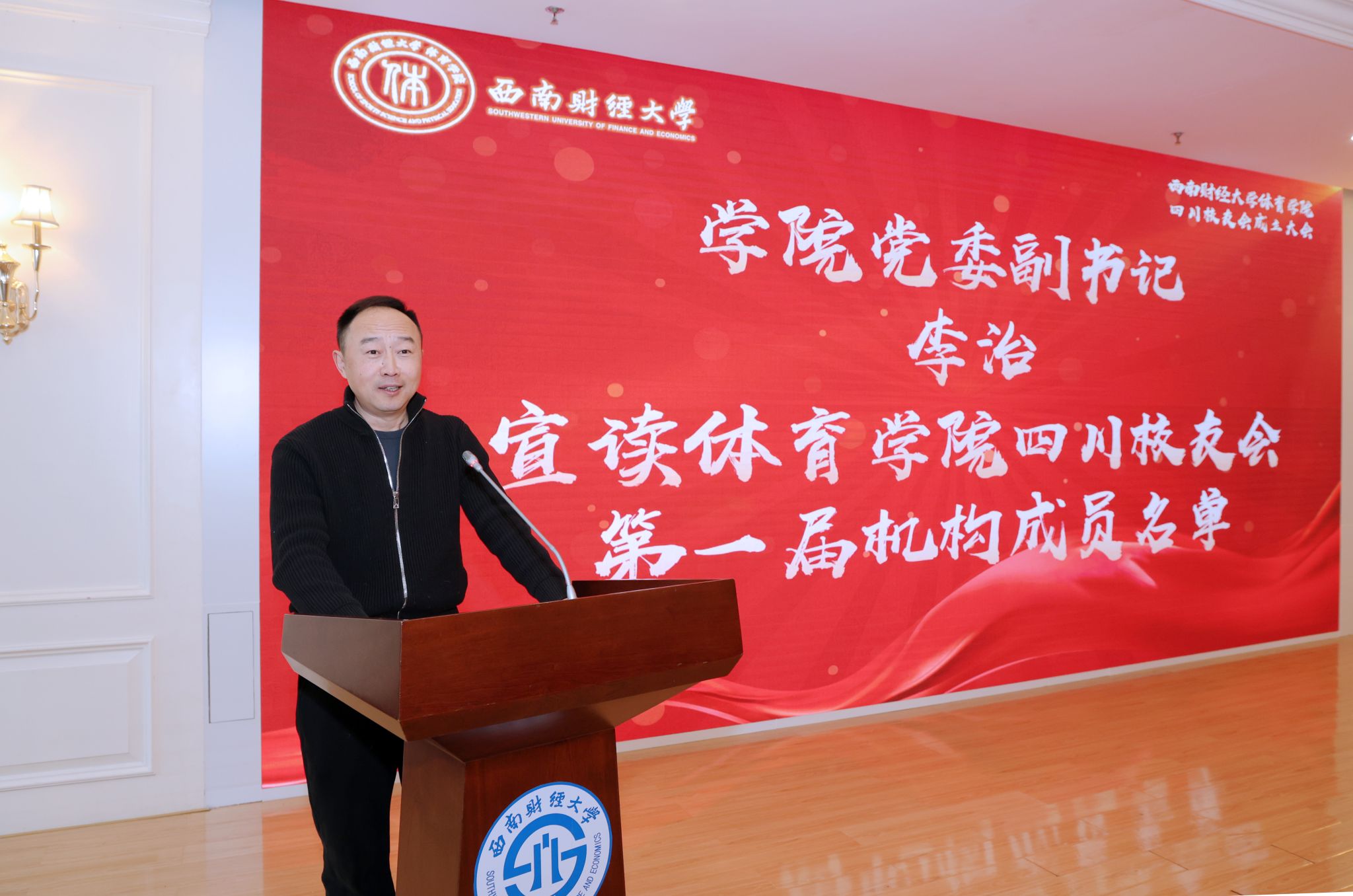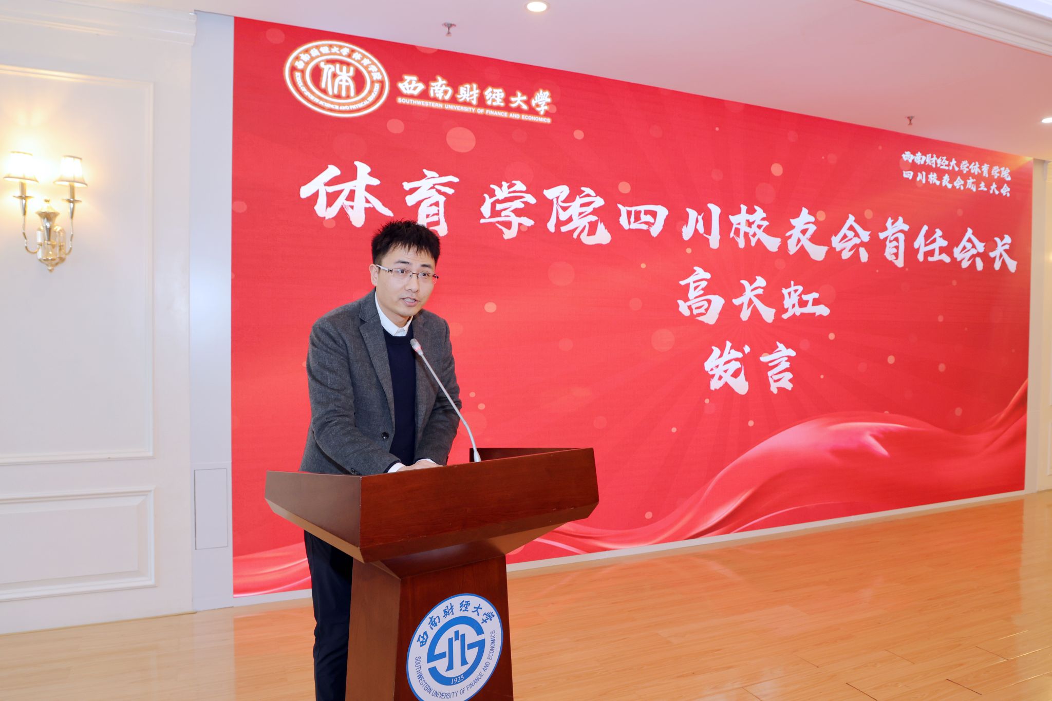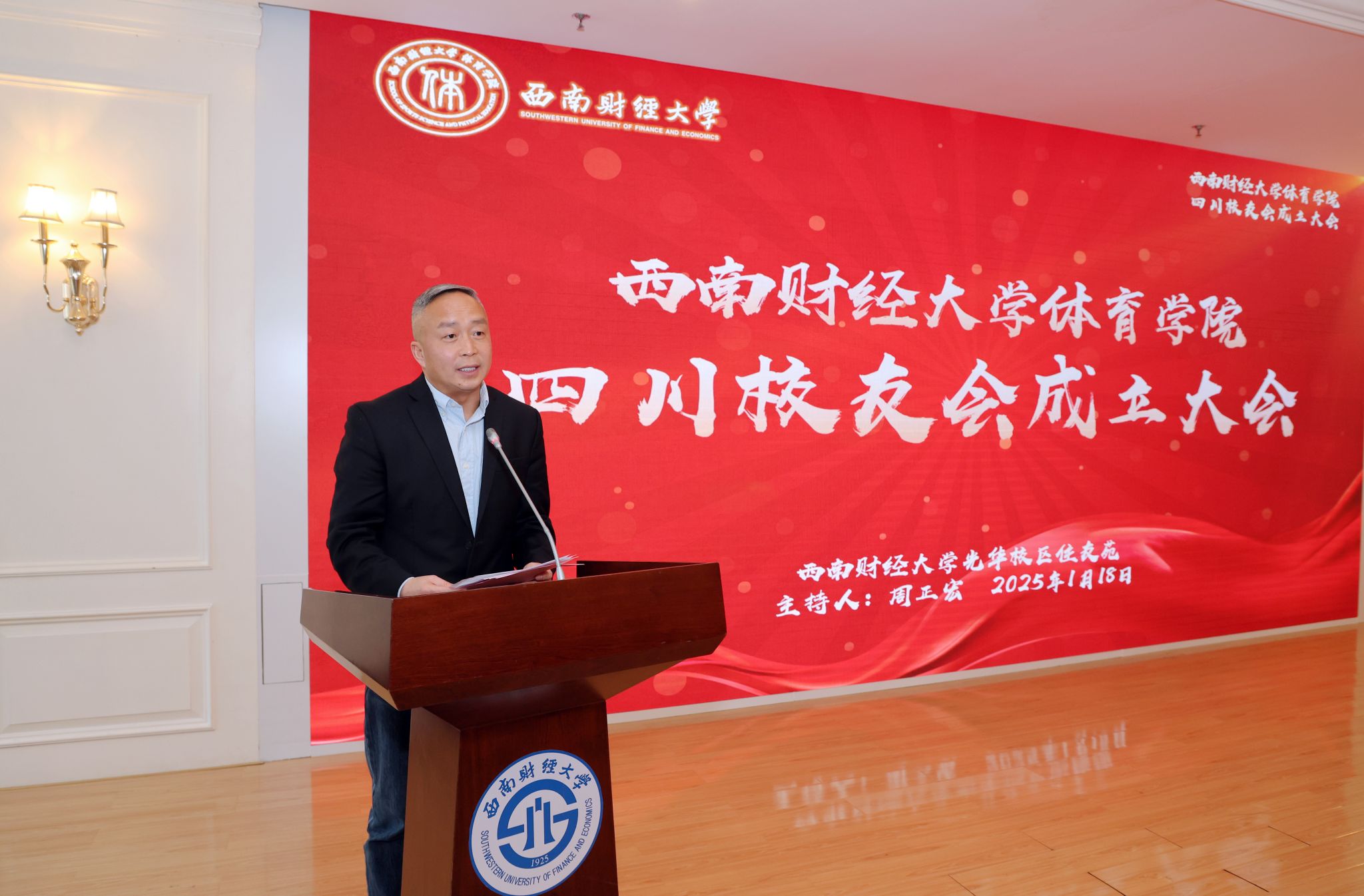 学院主持工作的副院长陈丛刊,代表学院向新成立的沙巴足球网四川校友会表示衷心祝贺,向与会校友表示热烈欢迎。他深情回顾了学科发展历程,详细阐述了学院自成立至今的建设情况和未来发展愿景,以及学院四川校友会成立的重要意义。他强调,学院取得的成绩离不开全体师生员工的努力奋斗,更离不开广大校友的大力支持。校友是学校最宝贵的财富,与母校是荣辱与共的命运共同体,学院要着力构建校友与母校沟通联络的桥梁,搭建信息交流、资源共享的平台,与广大校友一道共叙母校深情、共谋学院发展,为加快建设教育强国贡献西财体育力量。