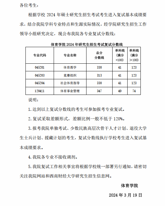沙巴足球网关于公布 2024 年硕士研究生招生考试复试分数线的通知