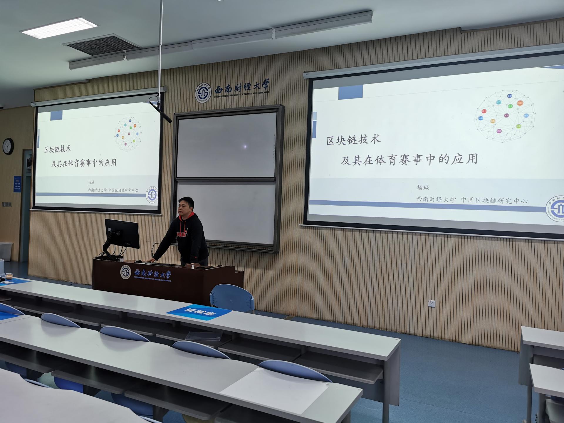 10月9日晚,西南财经大学区块链研究中心、经济信息学院副教授,计算机应用专业博士、美国德州理工大学访问学者杨城老师在光华校区明德楼201教室举办了题为《区块链技术及其在体育赛事中的应用》的光华讲坛。黄道名教授主持本次讲座,沙巴足球网、经济信息学院部分师生参加。