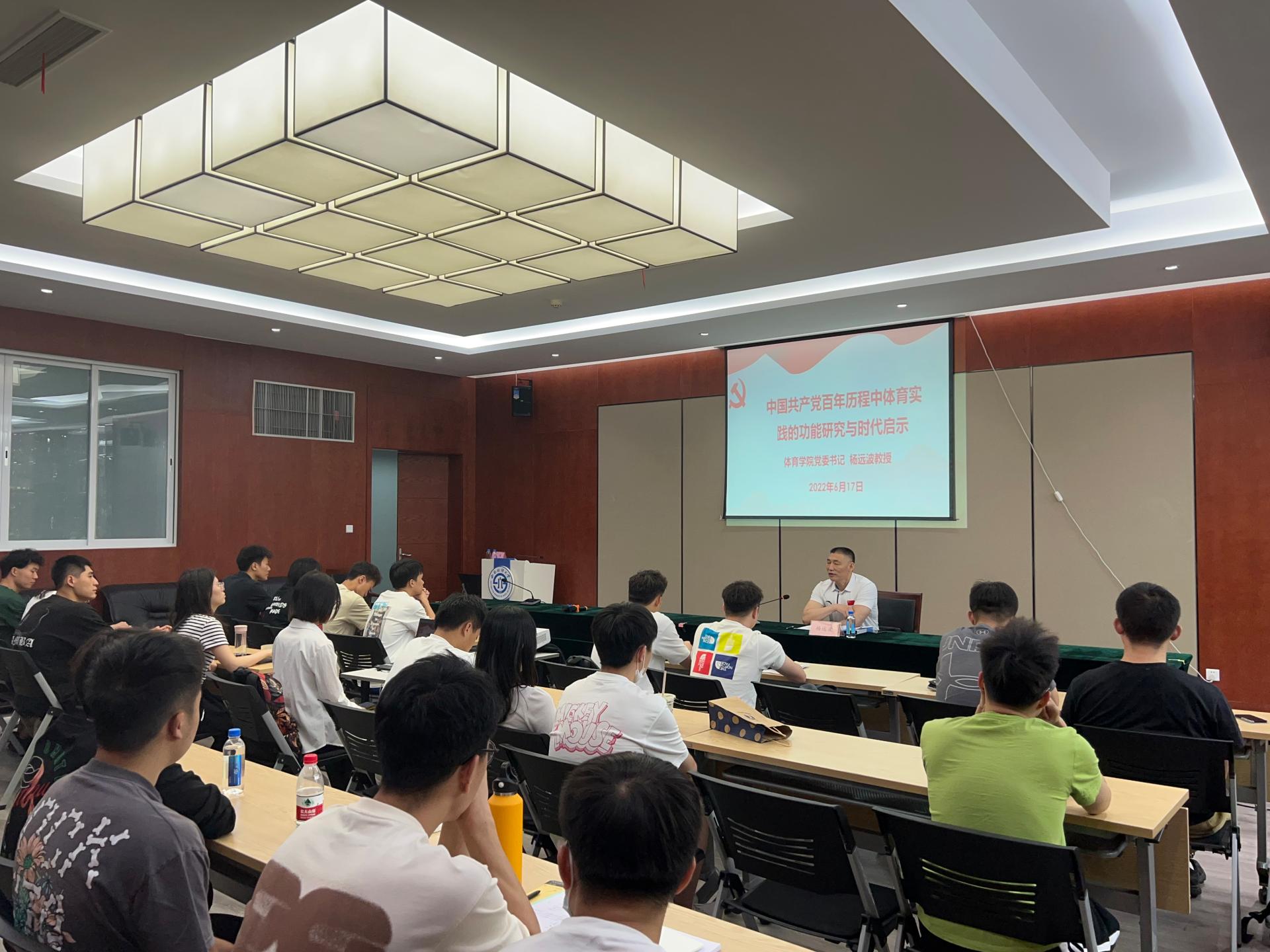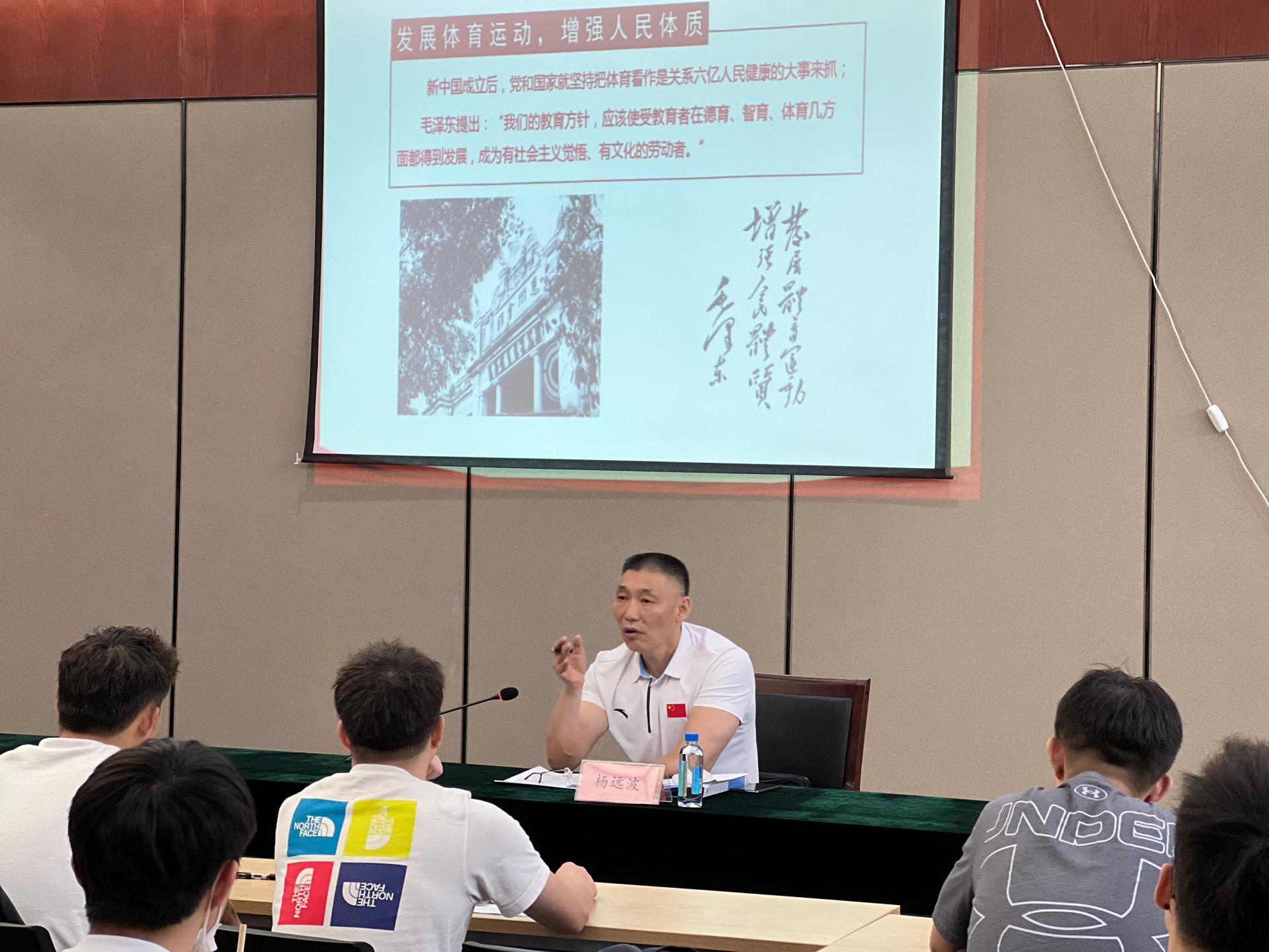 6月17日,沙巴足球网党组织书记杨远波在体育馆会议室为全体在校研究生开展了题为《中国共产党百年历程中体育实践的功能研究与时代启示》的专题思政理论课。