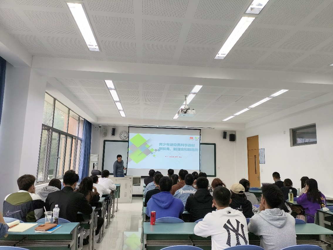 陈教授首先从何谓运动员选材、如何理解运动员选材、运动员选材中选才和育人、运动员选材的进展、运动员选材阶段划分和目标、运动员科学选材存在的问题等方面为同学们进行详细讲解。通过列举田径运动员李彤、篮球运动员姚明等著名优秀运动员的经典实例,阐释在运动员的选材环节中运动能力遗传度的作用,向同学们展示有关形体指标、生理指标生化指标的知识以及人们生长发育的一般规律。接着,他为同学们带来跨项、跨界选材理论及案例剖析、基因选材及发展趋势两个部分的具体分析,分享了国内和国外跨界选材的一些具体做法。