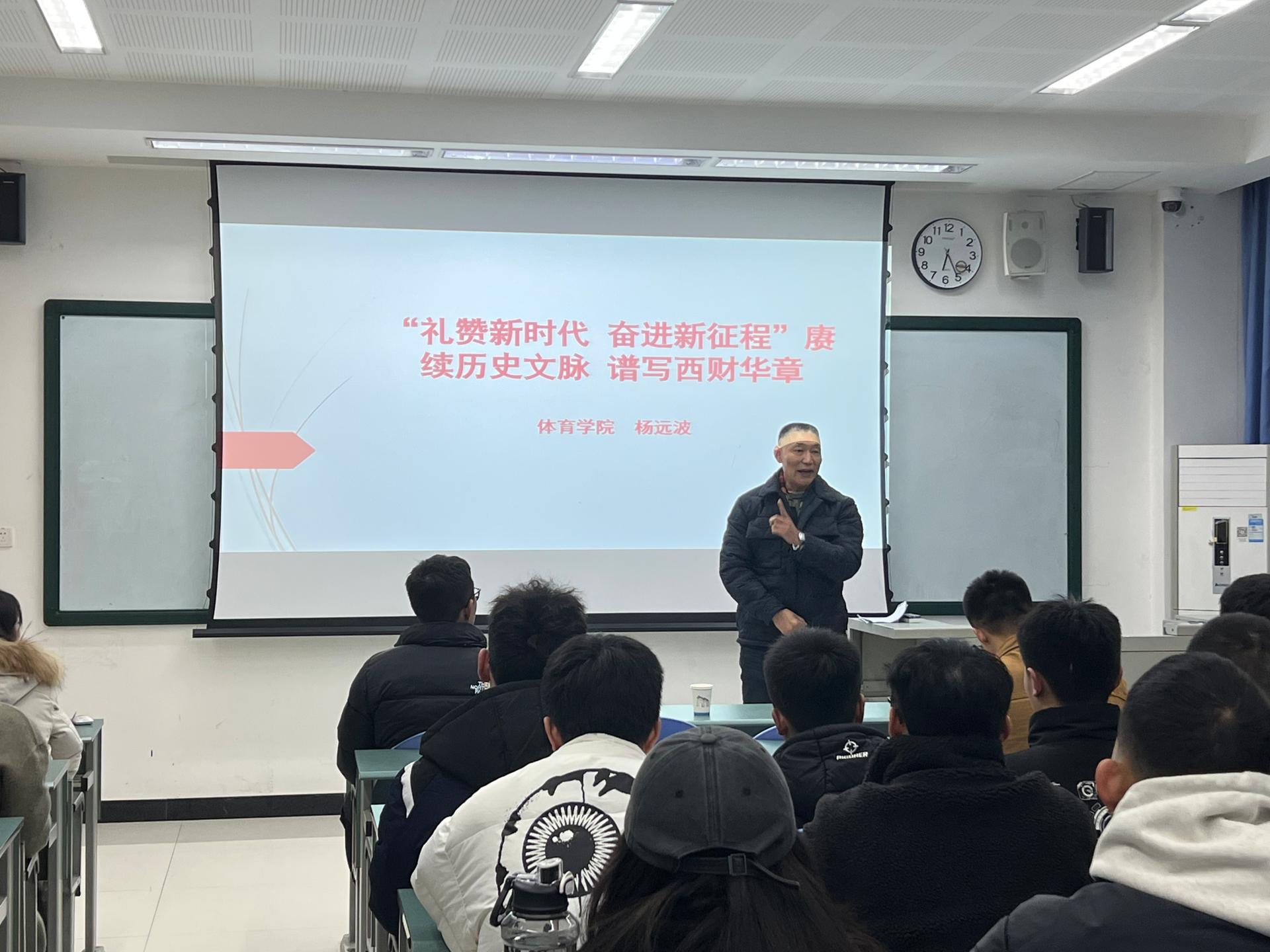 按照学校党委统一部署,1月4日晚18:30,沙巴足球网院长杨远波教授在明德楼208教室为学院2023级全体专硕研究生讲授专题思政课。